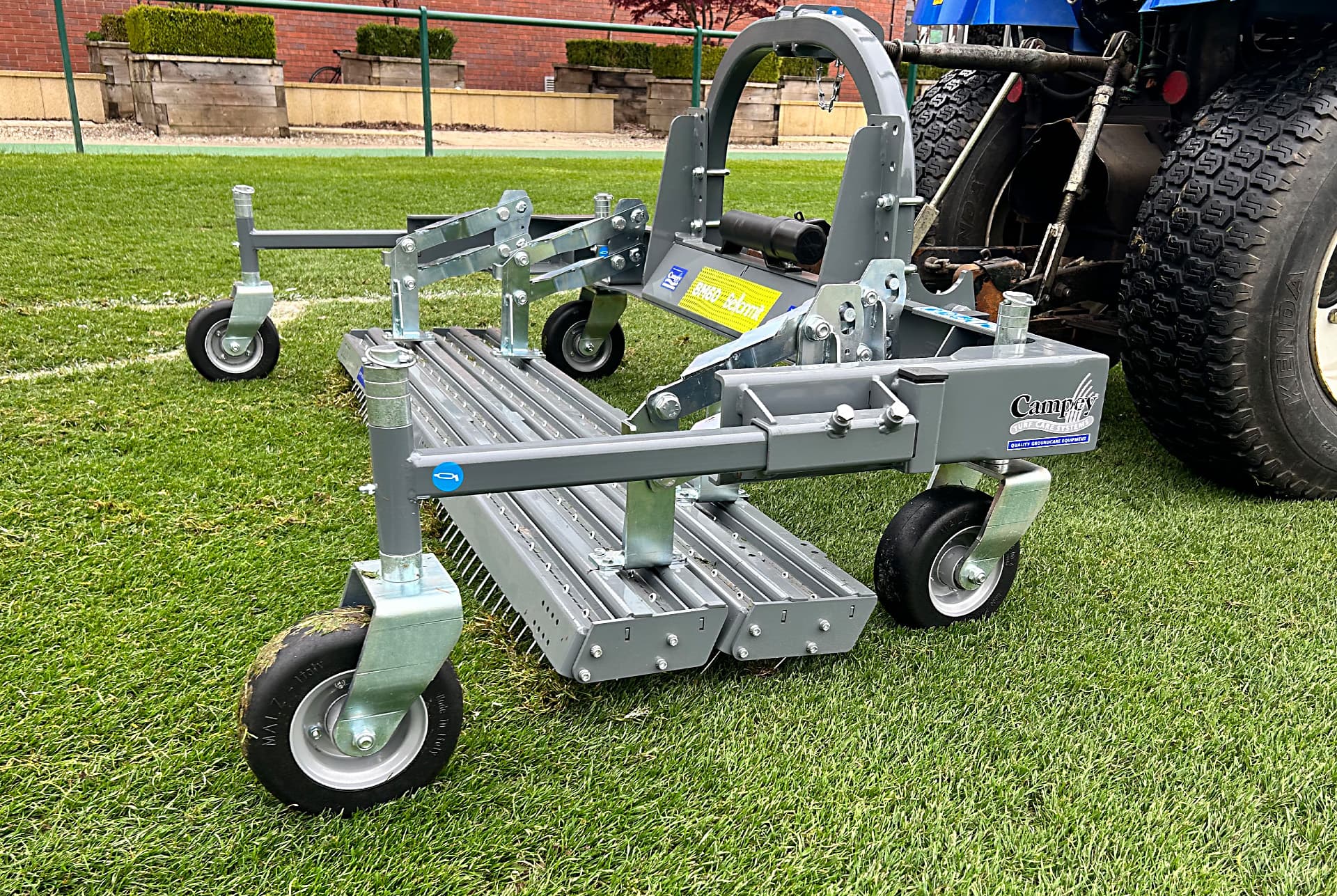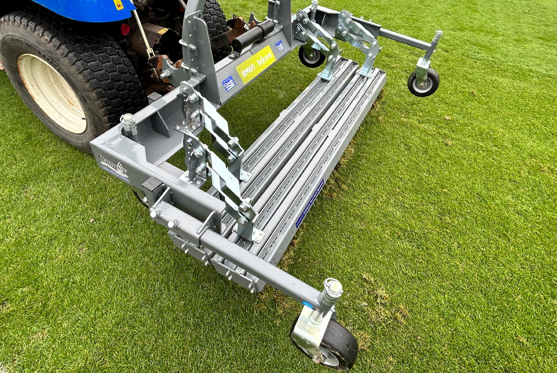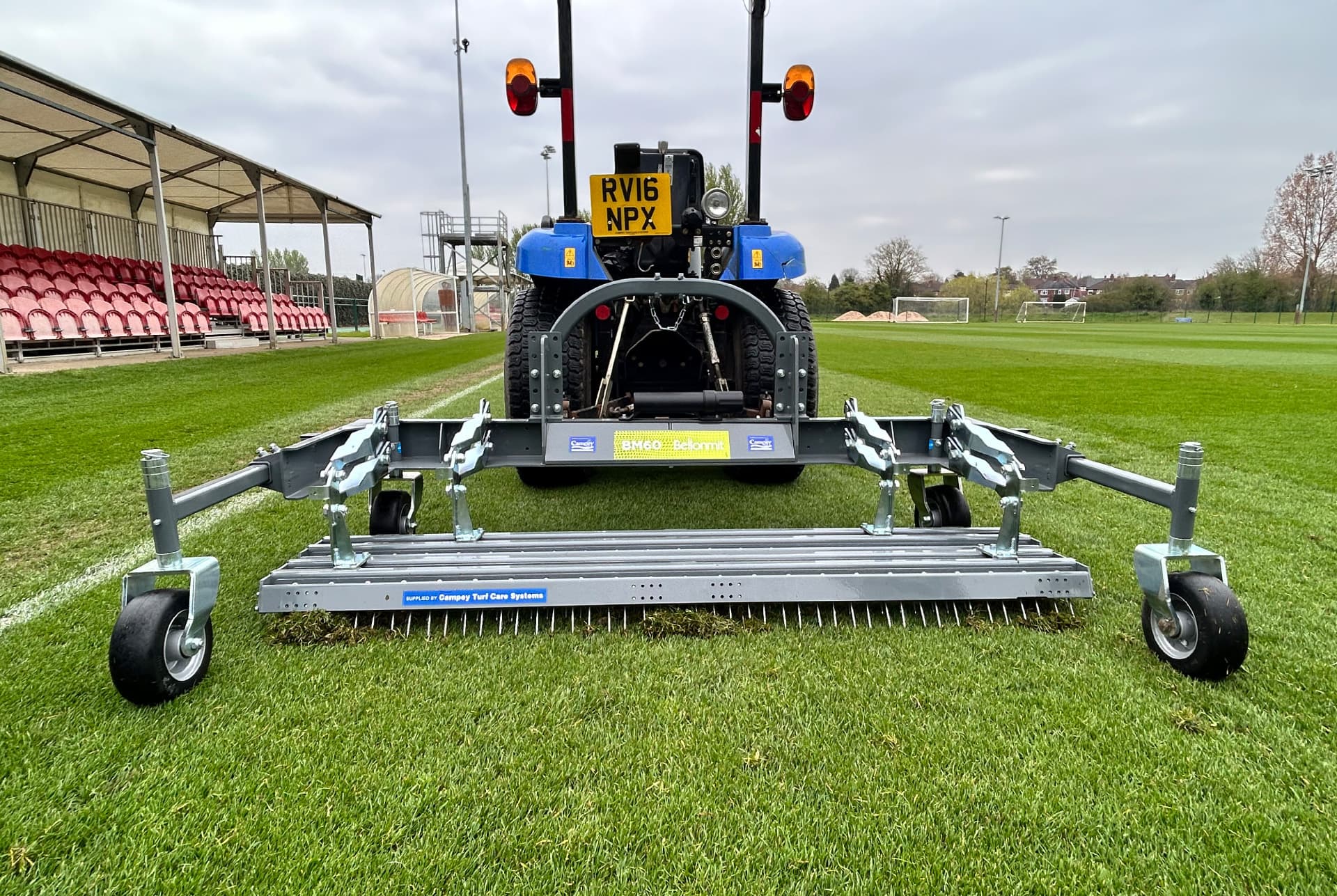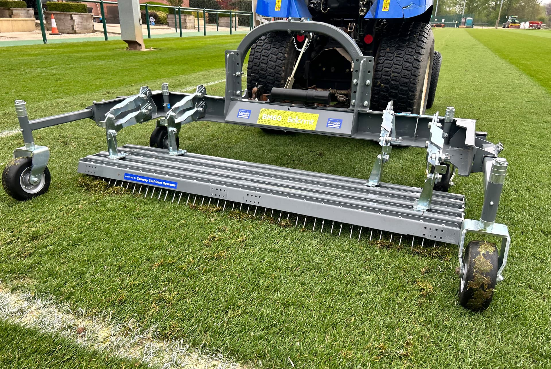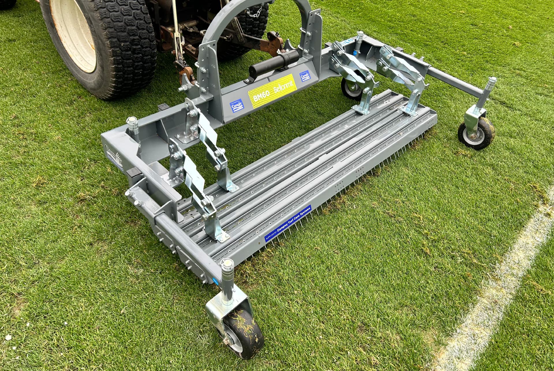 The BM60 is a spring rake designed for the maintenance of large gardens, parks, football fields, golf courses and other types of green areas. Thanks to a high working speed and continuous vibration of the springs, this product allows to remove the thatch from the ground without clogging the springs themselves and to obtain surface scarification at the same time. The rear wheel kit allows the use of the BM60 also for the maintenance of synthetic turf surfaces if there is a need to loosen the infill compacted due to weather conditions, or intense use. As well as during the installation phase of the turf for the clogging of organic material or rubber.