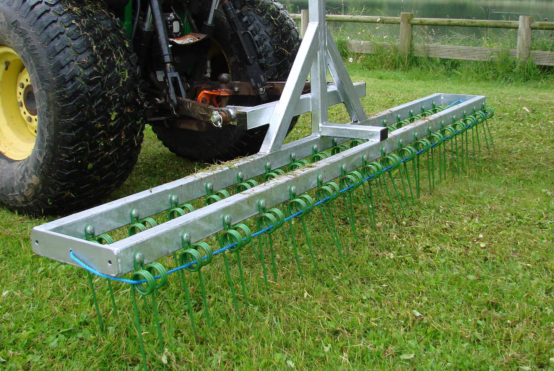 The CAMPEY™ Sportsfield Harrow is a tractor mounted implement for aggressive surface grooming. It can be used on turf, for standing prone grasses, dragging out dead or dying organic matter, or creating a tilth prior to seeding. The Campey™ Sportsfield Harrow also has an application for grooming on hard porous surfaces and is also ideal for gravel paths where regular use will prevent the accumulation of moss and algae. This 3-point linkage model can be mounted on all compact tractors of around 25hp and above.